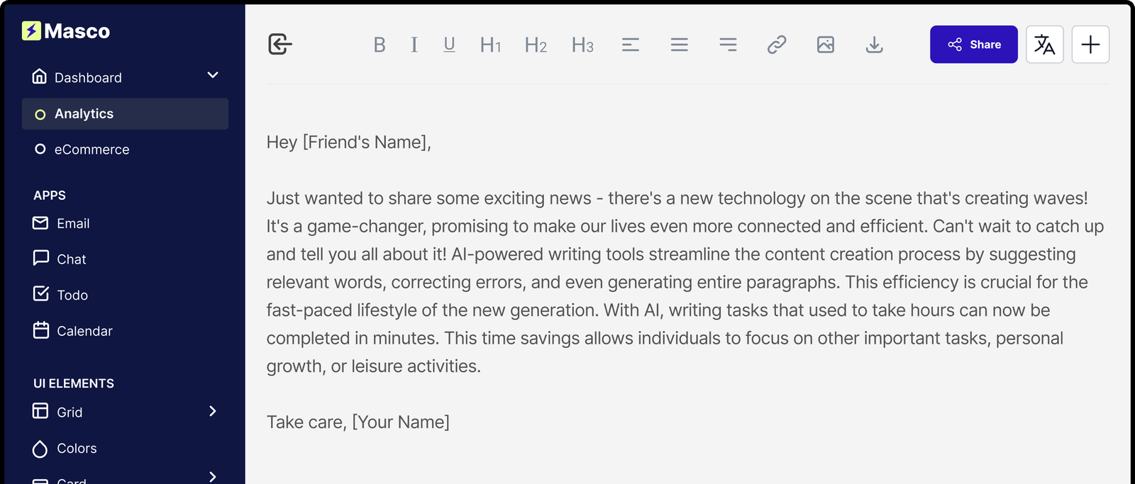 Welcome to Masco, your premier destination for AI content-generation software that pushes boundaries and sparks creativity. Our platform integrates the latest AI and delivers a new era of content creation.